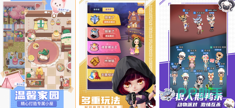 在推理学院中,玩家可进行狼人版的鹅鸭杀,动物派对氛围明显。玩法多种多样,除了经典的狼人杀之外,玩家还可以参加谁来了狼来了的活动,一共有两种模式,另外,谁是猪头王可以提高玩家的谈判能力,炸弹猫玩法乐趣多多。在推理之外,玩家还可以打造专属小屋,以温馨为主。玩家不仅可以装扮角色,还可以在推理游戏中交友扩圈。