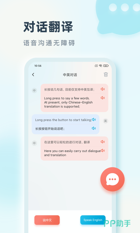 这是一款拥有强大的语言技术翻译工具。当然不仅能满足在对话过程的翻译需求,它还有拍照识别翻译,手机截屏翻译及文本内容的复制翻译等等。不管学习、旅行还是工作中,他都可以通过各种功能满足大家对不同情景的翻译需求。