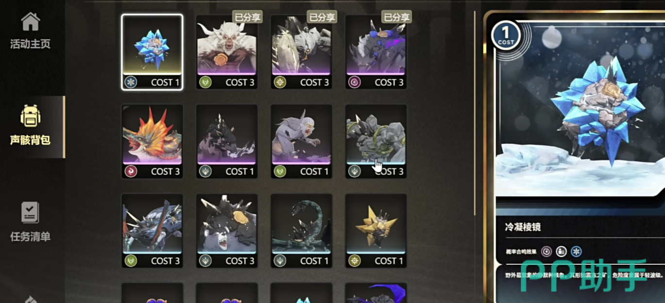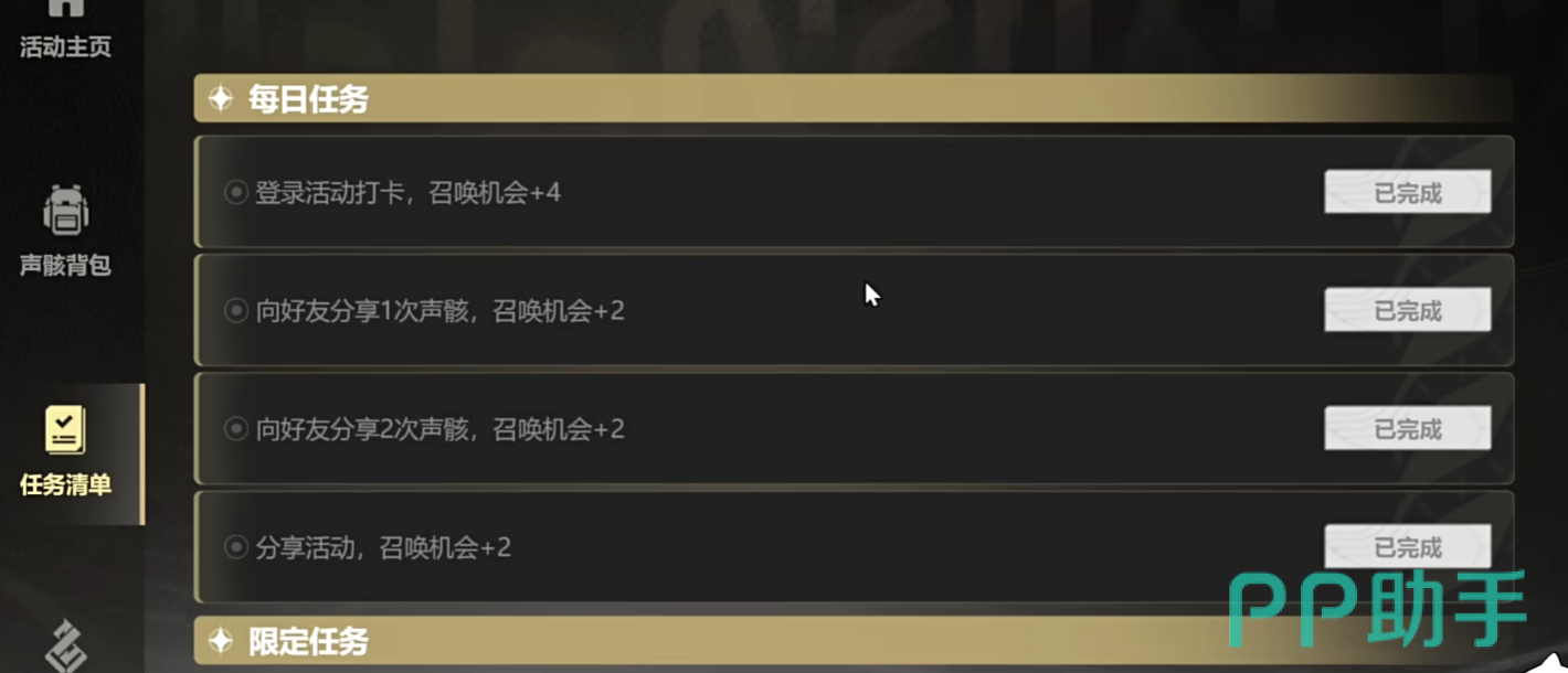 如果玩家决定要走火属性的输出路线,也可以直接选择青羽鹭和紫羽鹭,整体加成也是不错的,声骸的获得可以通过完成游戏内的每日任务来增加抽取声骸的机会,玩家首次可以获得10次召唤的机会,并且多余的金色声骸也可以分享给别的玩家哦!