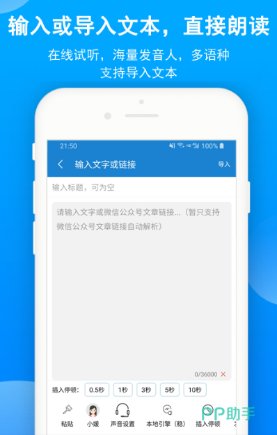 这个app占用内存比较小,大部分手机都能够轻松兼容。作为非常出色的朗读助手,有阅读需求,这款app可以轻松驾驭,支持30多个发音人。各种音色可以任由选择可个性化设置。同时还支持朗读播放以及音频文字分享。支持文字、链接,字数没有任何限制。随着时间的推移,平台不断的更新,后续会不断开放超多实用功能。