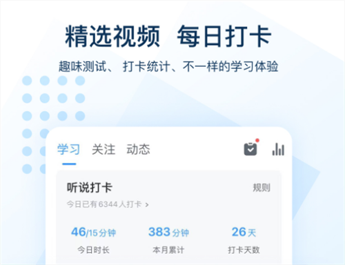 在这里,大家无需担心找不到喜爱的学习材料,拥有广泛的听力词汇资源和沉浸式听力练习,无论是针对四级考试、考研还是日常学习阶段,都能提供相应的帮助,更是能够通过软件来实现每日打卡,各类动态信息也是可分享给自己的朋友。