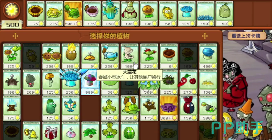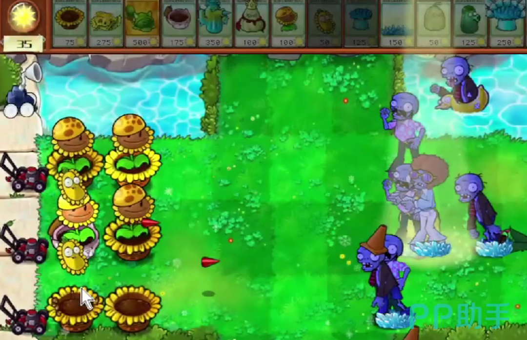 在植物的选择上,玩家可以选择【花盆向日葵】、【南瓜香蒲】、【西瓜香蒲】、【花盆香蒲】、【冰镇仙人掌】、【王者倭瓜】、【太阳向日葵】、【豌豆荚许愿机】、【冰镇爆炸菇】、【冰镇地刺】、【倭瓜坚果】,这几个植物在本次关卡中都能发挥比较大的作用,在游戏的开始玩家可以先在左边的一侧种植满向日葵从而获得资源,随后在第二排种上花盆香蒲,等到花盆香蒲准备好了之后,玩家可以在花盆上种植向日葵,从而获得向日葵资源。