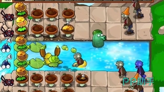 这关可是既有趣又刺激,关键在于如何合理搭配植物来对抗各种类型的僵尸。首先,阳光向日葵是必不可少的,它们是阳光的主要来源,必须种在最左侧一列,确保你的阳光储备足够充足。然后,泳池区域的防守就交给玉米卷香蒲和高兵菇组合吧,这对搭档不仅能对付水中的僵尸,还能提供强力的火力支援。