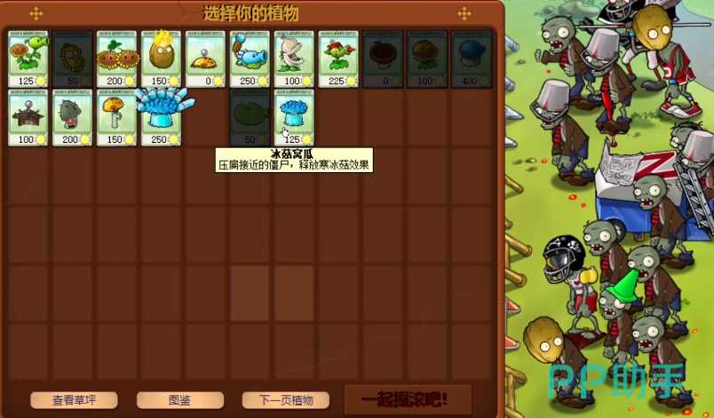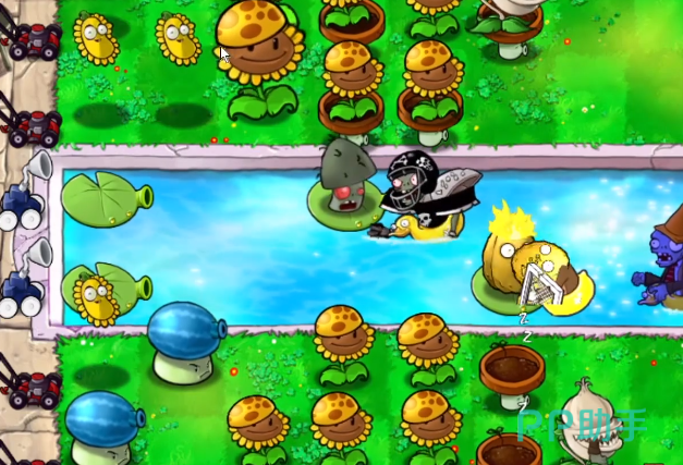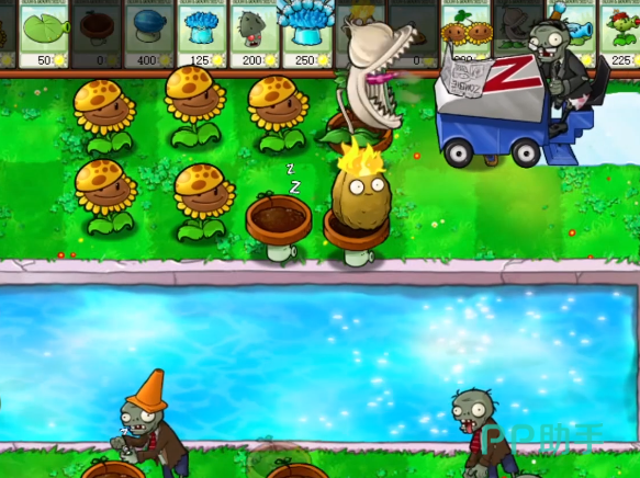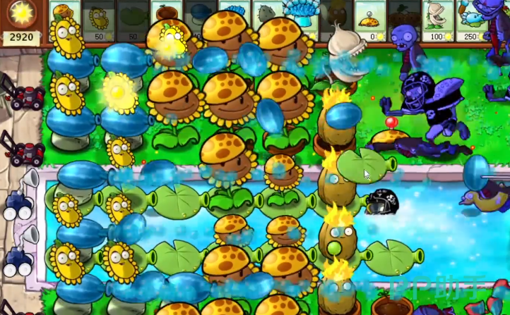 在这一关里面会有一个推着制冰车的僵尸,想要攻击这个僵尸难度比较大,玩家可以选择直接用地雷快速解决,或者是种植上大蒜吃掉这个僵尸,在杂交版里面植物的金额会更加贵一些,所以要多种植一些阳光向日葵,前期可以先用坚果墙暂时抵御住僵尸的进攻,等到有了阳光之后就尽快种上植物,最推荐的就是能喷射出冰冻效果的蘑菇,这个蘑菇结合了冰冻西瓜的延时效果,并且还带有一定的穿透力。