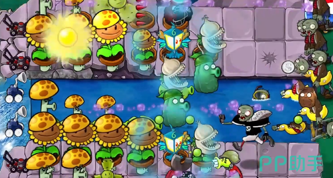 等到游戏进行到中期,难度就会陡然提升,此时除了水面上过来的敌人,战斗力不是那么强,其余的从陆地上走过来的僵尸都是伤害比较高,并且防御力也很强的。小伙伴们可以在地上安排好带有减速和穿刺效果的植物,并且将其他的植物都换成暴力输出型,这样通关就比较容易了。