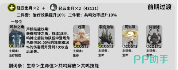 随着游戏逐渐的进行,在进入游戏后期之后别忘记要选择轻云出月x5,如果是两件套,就可以提升10%的共鸣效率,可如果是5件套,能在持续30秒内给有方提供治疗,另外还可以提升队伍中共鸣者15%的攻击力。从这里就可以看到,在正确搭配之后,可以让整个角色都变得更加有实力,当然在搭配时这些细节都不应该忽视。