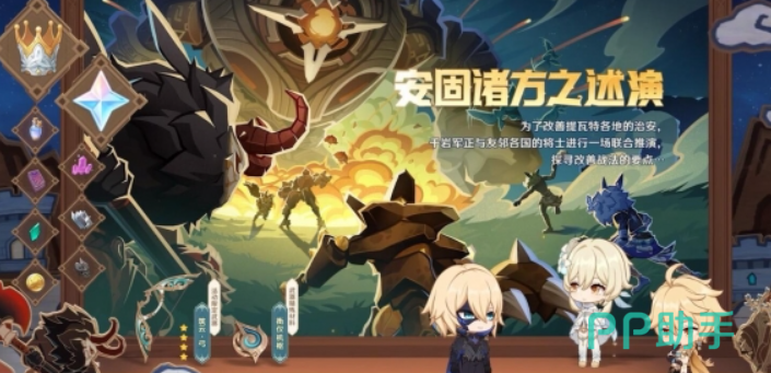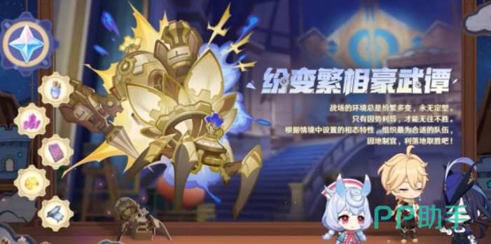 一个战斗游戏,在活动中要根据活动中的要求利用元素反应来击败活动中的敌人,完成活动挑战后能够获取大量生物奖励。