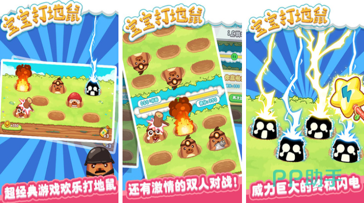 宝宝打地鼠是款玩起来蛮有意思的点触式儿童向打地鼠游戏,大家必须快速点击屏幕上的小地鼠才能通关,超级经典的打地鼠玩法与轻松休闲的氛围很适合小朋友体验,更有双人分屏的打地鼠模式可以让孩子们参加,爽快解压的打地鼠过程使小朋友忘却了所有烦恼,超多的打地鼠关卡期待着小朋友慢慢闯关。