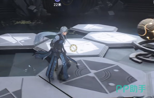 因为游戏里的任务设定都是环环相扣的,如果想要挑战天地旋恒这个副本的话那就需要先完成上一个前置任务,要先在地图上查找伏波镇,在这里要女领取修复雷达的任务,顺利修复完成之后才能进入到天地旋恒副本,进入到这个副本之后,那就能看到这里设定了一个机关,需要使用下落攻击把中间白色的地砖击打下去,需要把游戏里的六边形白色地砖变成黑色的,这样大门就能顺利打开。