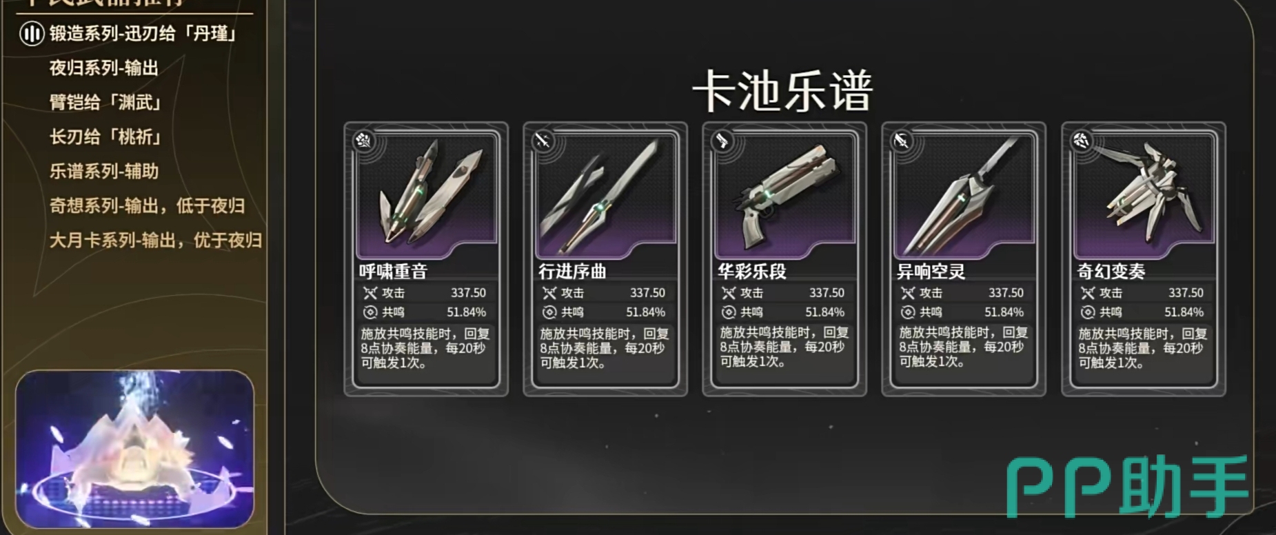 武器的作用就是共鸣和充能,间隔20秒就能刷新技能,只要升级到5阶,就可回复高达16点的协奏技能,能够从20级升至90级,高达337的攻击力和51.8%的共鸣能力。