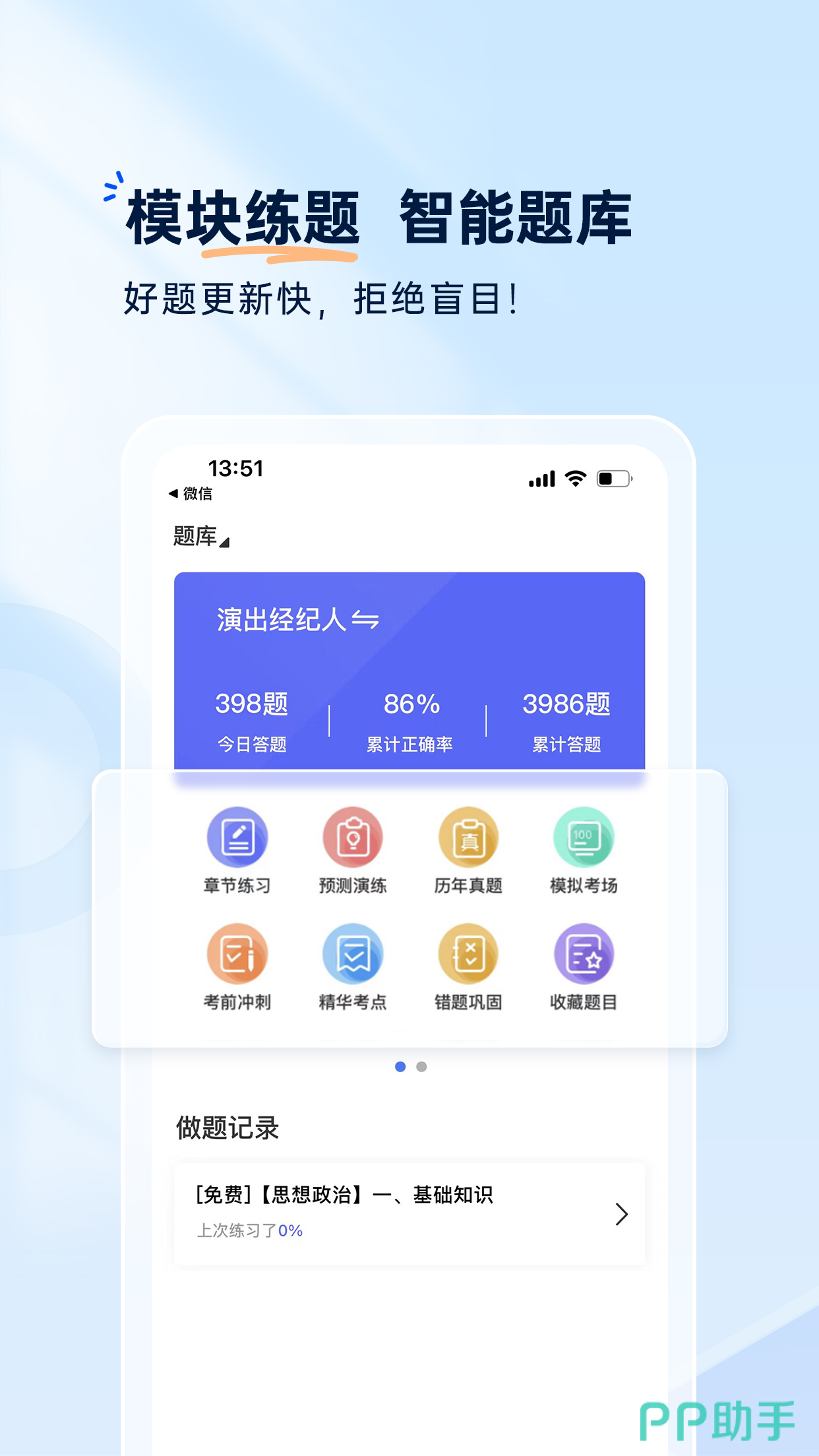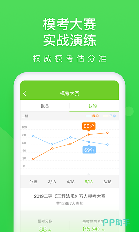 这是一款在不同职业考试当中进行题库练习的工具,这款会结了社会上各路人才的专业考试。题库6亿多,不同的做题数据为大家提供精准的题库练习,并且提供错题解析以及错题更改保存等功能,利用互联网的教育黑科技开启考试大纲的梳理。随时随地都能够参与在线模考,体验与竞争对手同台竞技的乐趣。