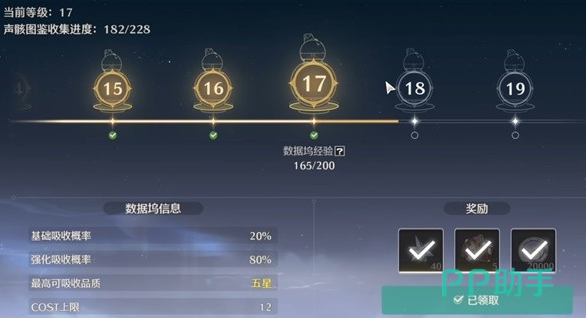 数据坞这里就会有两个完全不一样的节点,一个是15级,一个是8级。八级掉落品质主要是为了紫色,15级是金色。想要提升到15级,还必须要将三个红名怪物打败。数据坞还有多个不一样的玩法,例如就可以有效达到追踪声骸的效果。如果大家去参加活动,还可以额外的获得金色声骸!在提升等级的过程中,这些漂泊者们还能得到奖励,主要的奖励是体力药、密音筒、大世界探索的体力上限,这一切都不应该忽视。