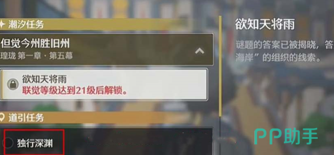 要想开启关卡,玩家应该完成道引任务,等级提升到17级后就可以解锁【独行深渊】。接着点击右下角的任务,根据任务可以进入到新的基础和散华对话解锁目的地。最后在完成对话之后,就能迅速的开启逆境深塔模式。