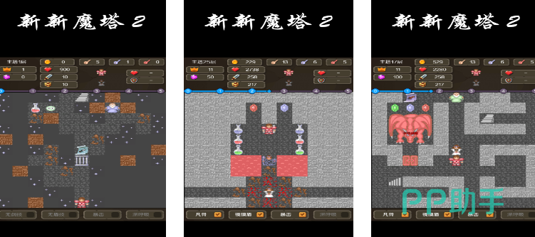 关卡数量众多,全部采用像素画风,地图的迷宫设计更加复杂,怪物的出现频率更高,并且种类多样,比如冻死骨为成为玩家前行的障碍物,玩家可借助道具,快速在迷宫中找到钥匙进行逃脱,进入下一关的魔塔体验。在独立小游戏方面,玩家还可以参加“白银之间”关卡,闯关路线更加危险。
