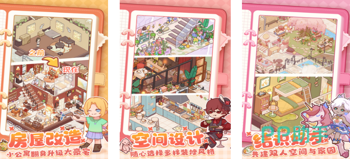 装修风格各有千秋,不仅有竹影清风,还有魔法秘境,玩家还可以在夏日海岛环境中进行个性化设计,在此之后,玩家通过购物购买家具。在户外方面,玩家不仅可以参加钓鱼等游戏,还可以研发各种料理,并且制作咖啡,非常悠闲。植物元素丰富,玩家可以种植花草,并且逐渐扩大规模,通过相关场所认识周边好友。