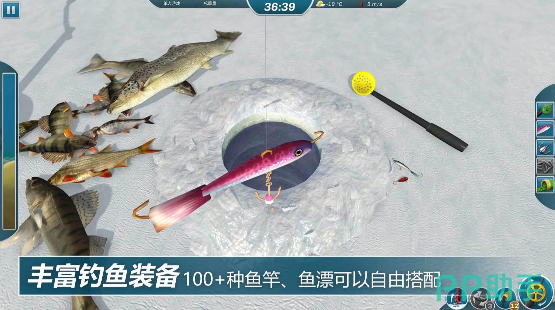 在冰上开凿出一个洞便可进行钓鱼,是很多地方在冬天常用的钓鱼手段,这款冰钓大师就还原了这种钓鱼方法,使人们能在手机上去享受在冰雪环境下的独特钓鱼乐趣,并且里面的鱼类都有着极具真实感的行为模式,玩家不仅要掌控冰上垂钓的方法,还要根据不同鱼类的特性,去选取适用的渔具,进而才能更好地完成自己的冰上钓鱼挑战。