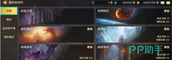 日常委托副本是目前游戏中可以获得各种不同资源的一大渠道,总共分成7个不一样的日常副本,每一个日常副本在通关次数还有入场等级上面都有限制。但绝大部分都没有什么太大的难度,只需要花费少部分的时间就能让角色更快的成长,还能得到各种所需要的资源道具。