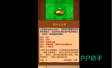 成长巴豆也是很好用的,能够让成长型的植物快速长大,像是向日葵和土豆雷都可以,能提高小伙伴们的游戏效率。阳光花盆是一个可以产阳光的花盆,冷却时间也很快,看阳光的效率高,而且不会占用位置,就连机枪也打不掉,也是一个比较好用的植物。