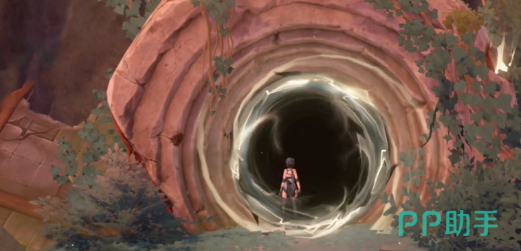 通过该传输一点,玩家传输到对应位置之后,可利用钩锁直接跳下悬崖,朝着西部方向进行钩锁飞行,会在飞行的过程当中看到山麓研究站,然后跳上火车轨道向前奔跑,继续向西飞行,此时就可以看到一处断崖,然后操控着角色奔跑到断崖尽头,利用勾锁飞升而下就可以直接抵达焚焰海,抵达焚焰海之后向北侧奔跑就可以看到一个洞穴。