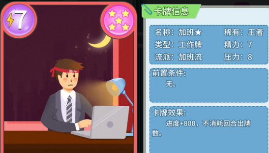 进度卡的核心到底在于什么呢?就在于加班,这张卡牌就有一个独特之处,不会消耗出牌。而这一张牌目前大概会有7张到8张,玩家可以不选择分解,全部都留下来。或者是到了后期只要商店看到马上就可以通过兑换获得最低级别的,基本上3张到4张就已经足够。