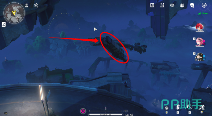 之后玩家需要攀爬到适宜的高度,在用两大角色的跳跃闪避和青鸟攀爬到对面的车上去,具体的车辆位置,小编在下方用红圈已经圈出来了,小编更建议大家等CD方向转好之后荡过去,这种方法既安全又高效,新手玩家非常适合去尝试,击败等级80的残星门徒之后,玩家就可以在前方直接收集相关的宝箱以及各种材料了。