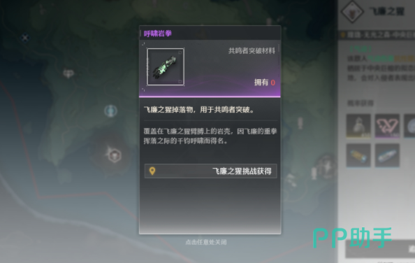 击杀这个boss之后,玩家可以获得呼啸岩拳,这是一个共鸣者突破材料,当然除了在地图里直接寻找这个怪物之外,也可以在游戏里购买,玩家可以打开游戏里面的商店,在这里可以使用300代币去兑换,但是如果直接兑换的话,玩家就需要氪金,平民玩家还是比较适合直接去场景里面寻找。