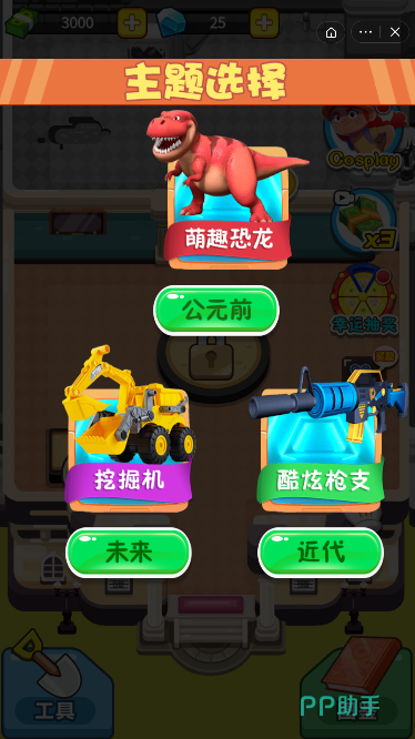 玩家一开始进入游戏时,会先选择游戏角色。疯狂玩具城顾名思义就是很多玩具种类,玩家可以根据喜好进行选择,每一个玩具的玩法不同,在手机上的操作按键也不同。乐趣多多。地图模式有平原、沙漠,遗迹等多个选择,除了平原和沙漠面积比较大的地图外,其他地图都可以看视频免费玩。在地图中完成相应的任务获得奖励即可解锁沙漠和平原地图。日常玩法就是在地图中进行主题选择,可以联机玩耍,和队友一起发现远古或者未来的玩具来完成冒险,用时最少的一队胜利!