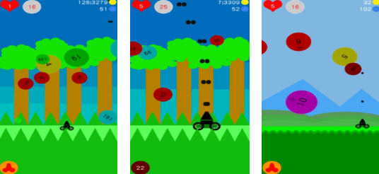 简单的彩色图画上方会不断的掉落小球,每一个小球的大小以及包含的数字不一样,数字越大的小球体积也会越大,你需要按照彩球上面的数字来进行击打才能够消除小球,消除的小球会变化成你的分数保持起来,每一个回合击打的分数越高说明你的射击水平越好,越到后面掉落的小球会越多,需要你的水平也会越高。