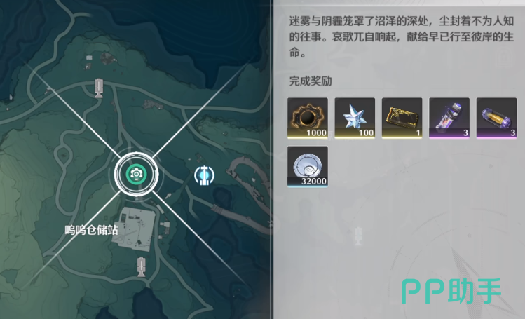 想要完成彼岸的哀歌,玩家首先需要在地图里寻找鸣鸣仓储站,在仓储站上面会有一个齿轮的标识,点击这个齿轮之后,在齿轮的右边有一个信标,可以直接通过信标穿越到这个位置,然后玩家可以在小地图上看到齿轮标识,就在西正西方向,可以沿这个方向一直向前就能到达任务点,在这里要和角色对话,对话完成之后就是打怪环节,对战完成之后就能进入到仓储站里面。