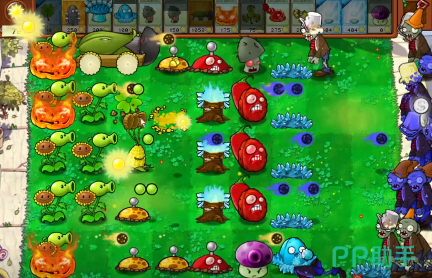 其实想要通过这一关,必须要把这些难以处理的僵尸给打掉,建议大家不要把植物放得太靠前,否则可能会被这些僵尸给摧毁掉。在前排的时候也不建议大家放忧郁菇,因为这时可能会被压扁,但这样放还有一个好处,有可能会把矿工和武王僵尸给抵挡住。