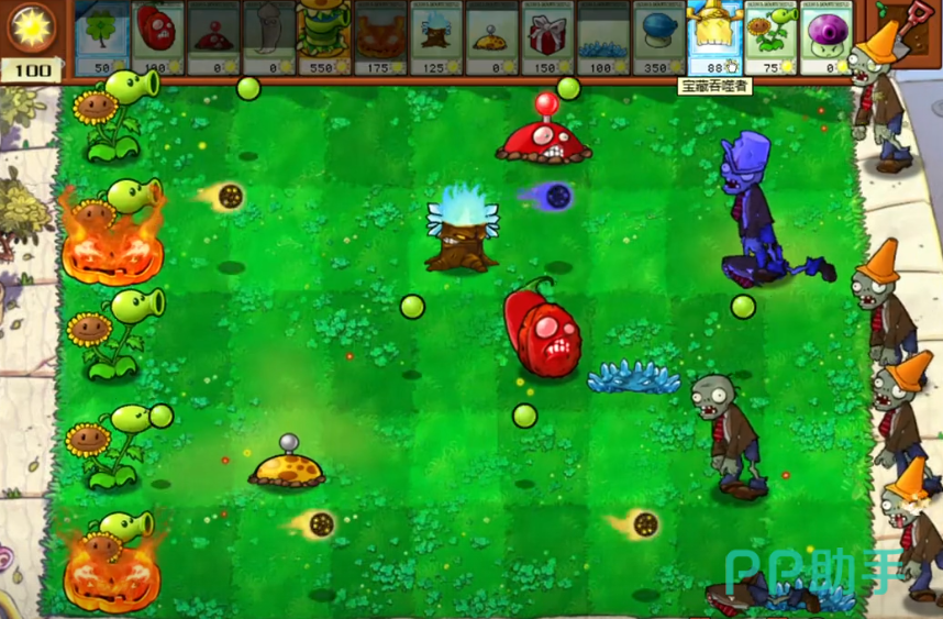 除了这个观察比较难以外,游戏中的白天和夜晚也特别难以挑战,因为在这个关卡中,几乎所有的僵尸都会出现。高级难以应对的僵尸更容易出现,没有任何绝对安全的地方,在这里忧郁菇也没有办法表现自己了。其实白天还算可以,特别是夜晚,因为在夜晚的时候,阳光生产并不算是特别快,这时就需要大家小心一些。
