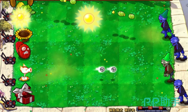 比如扔个辣椒和电动生菜,这样大家就能更快地过关,迅速玩到第27关了。不过,有很多玩家即便是到了27关也会卡在这里,要想快速过关,我们要巧妙地用窝瓜来挡住和击败那些想要入侵的僵尸。到了这里之后,游戏就开始考验我们如何利用窝瓜这种植物,来有效地对抗源源不断的僵尸了。可以在第三排种双胞向日葵,攒阳光,看到第一只僵尸出现就用窝瓜一招秒杀它,第二只僵尸也这么干。