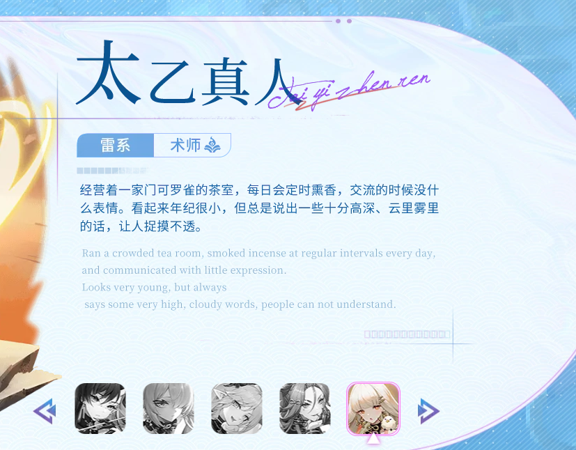 太乙真人作为一个雷系角色,她的理念便是为天地立心、为生民立命。所以为了变成犹如圣人一般善良,她打算继续学习,并成为救世主。为的就是打造一个太平世界,她的主要职业便是雷系法师。