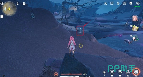 而到达该观景点的方法其实也是比较简单的,玩家可以选择凋零防线右侧的一个小行星标,然后完成传送。进入到地图之后,玩家需要沿着东北方向进行奔跑翻过一座石头山就可以看到远处的观景点了在抵达该观景点的时候可以直接将工具切换成切锁,然后飞到崖壁对面就可以抵达湖边的观景点位上。