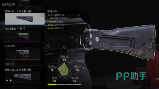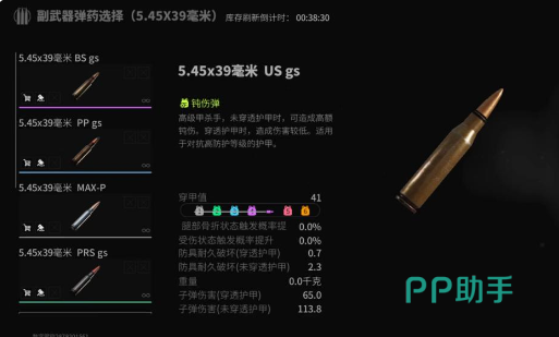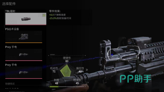 枪托方面我们可以选择较为便宜的蓝色枪托,虽然便宜但是受击上扬和移速都能符合我们的近战要求,瞄具我们可以选择PT6瞄具,这能让我们标记30米内的敌人让其无处遁形,最后就是子弹方面,建议大家选择gs钝伤弹,这样能让我们在面对护甲高的敌人时有直接穿透能力。