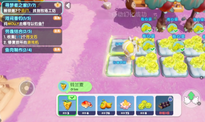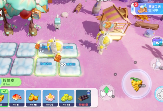 种植玩法是最基础的一种,除了在这个游戏里,其他的很多游戏也都会有种植的设定,很多玩家对于这种种植模式应该都已经不陌生,除了种各种蔬菜水果之外,还可以在这个周边种植一些果树,成熟之后获得的蔬菜水果玩,玩家都可以去游戏里烹饪成菜品,如果玩家想要让更多的泡泡玛特入住自己的庄园,那就需要在游戏里多去种植蔬菜水果,每一个泡泡玛特都会有自己喜欢的菜品,玩家只有达成他们的要求才能提升好感度。