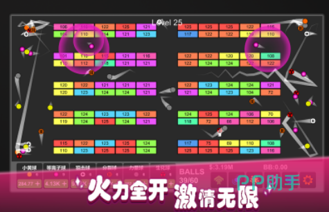 这款简单的放置游戏有足够的特色,进入关卡之后不需要过多的操作,通过放置的方式就能完成。游戏中有超多小球玩家需要不断升级小球的属性,无限闯关模式,超多砖块不断的掉落,等待着小伙伴们前来收割。只有无限升级,不断提升小球的速度以及力量,让小球变得更强大,才能够提高关卡的通过率。