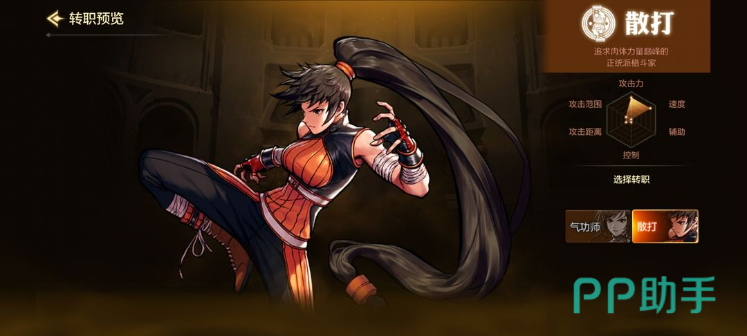 格斗家也是基础职业之一,可以转职称为散打或者是气功师,前者是近距离物理输出职业,一般都是单段输出,对对手进行攻击的时候,能让敌人长时间陷入到僵直效果当中;后者是适合远距离输出的魔法职业,不论是作为输出,还是辅助方面都很强。