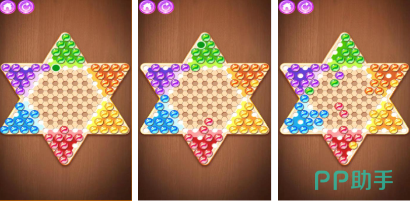 这款支持六个人一起玩的跳棋对弈游戏相当有趣,六角星型的棋盘塑造颠覆了玩家对棋类游戏的认知,游戏内的棋子也被分成了六中颜色,益智型的对弈方式考验着棋类游戏爱好者的智商,6个人用回合制的方式轮流下棋的设定很有创意,色彩鲜艳的画面渲染让这款棋类对弈手游更有观赏性,爱下棋的朋友试试这款六角形棋盘游戏吧。