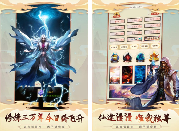 玩家可畅享修仙之旅,体验寻宝、收复坐骑等精彩活动。精美的角色设计,与好友共修仙道,助力修为提升,直至飞升成仙,而且玩家们可以拥有私人洞府,在里面修炼仙法、锻造神兵利器,尽享修仙之乐。更设有挂机玩法,任何时候都能自动修炼,等级将稳步上升。最吸引人的是无需氪金,也能在游戏中获得绝佳的修仙体验。