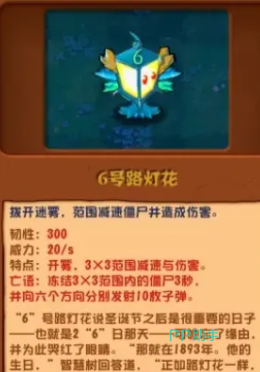 而6号路灯花的神奇之处还不止于此。除了能驱散迷雾,它还能在战斗中发挥作用。它的花瓣像是一把把小小的枪,能在3×3的范围内进行攻击。更令人惊喜的是,它发射的子弹还有减速的效果。那些原本跑得飞快的僵尸,一旦被它的子弹击中,就会变得慢吞吞的,像是被施了魔法一样。这样一来,6号路灯花就成了玩家冒险路上的得力助手。它不仅能帮玩家照亮前方的道路,还能帮玩家抵御敌人的进攻。在杂交版中,6号路灯花还可以与其他植物进行杂交,产生出更加强大的杂交植物。比如当路灯花与寒冰射手进行杂交时,就会产生出一种全新的植物——冰炬树桩。