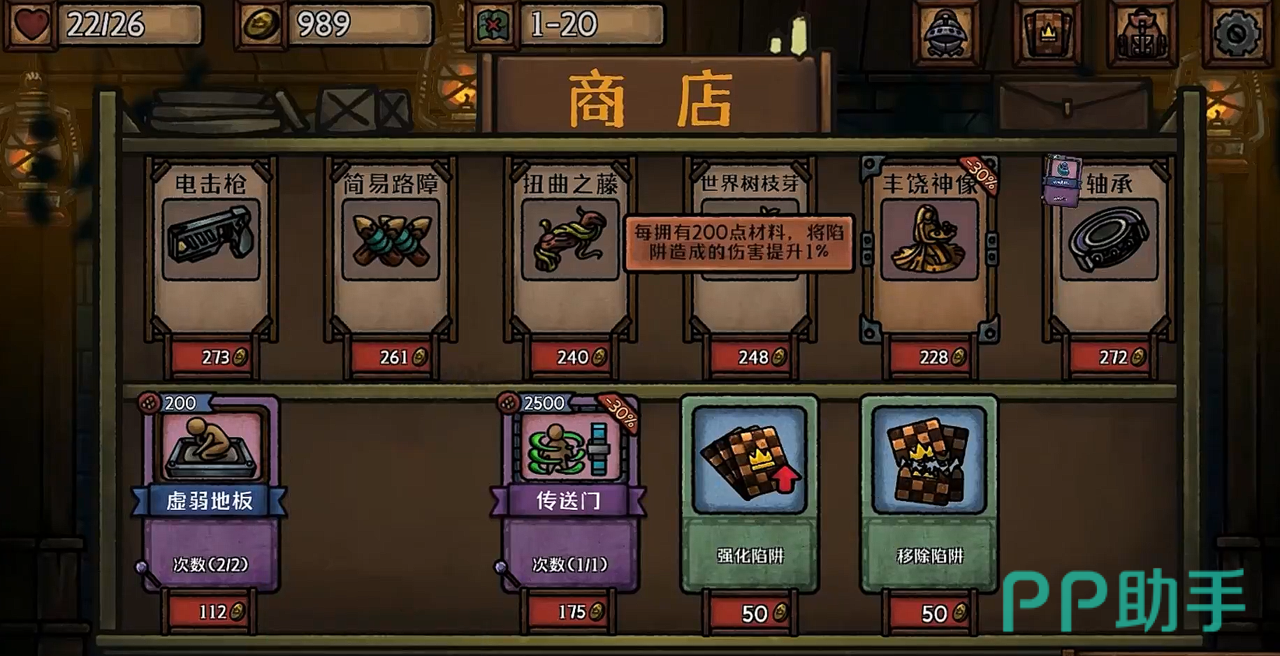 关卡设计了非常多变的地图,而地图上出现的建筑每一个都有自己的作用,例如铁匠铺可以强化陷阱,圣所可以强化英雄技能、机关房可以得到陷阱等,大家在关卡的时候需要合理运用这些建筑。