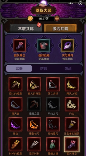 持鸣魔弓是大家选择的关键,其中普攻选择分裂和积蓄,连弩、连发和击破、战备也是需要选择的,环绕风暴和潜能也不能忽视,这样下来,在攻击的时候伤害就能快速的打出来了。