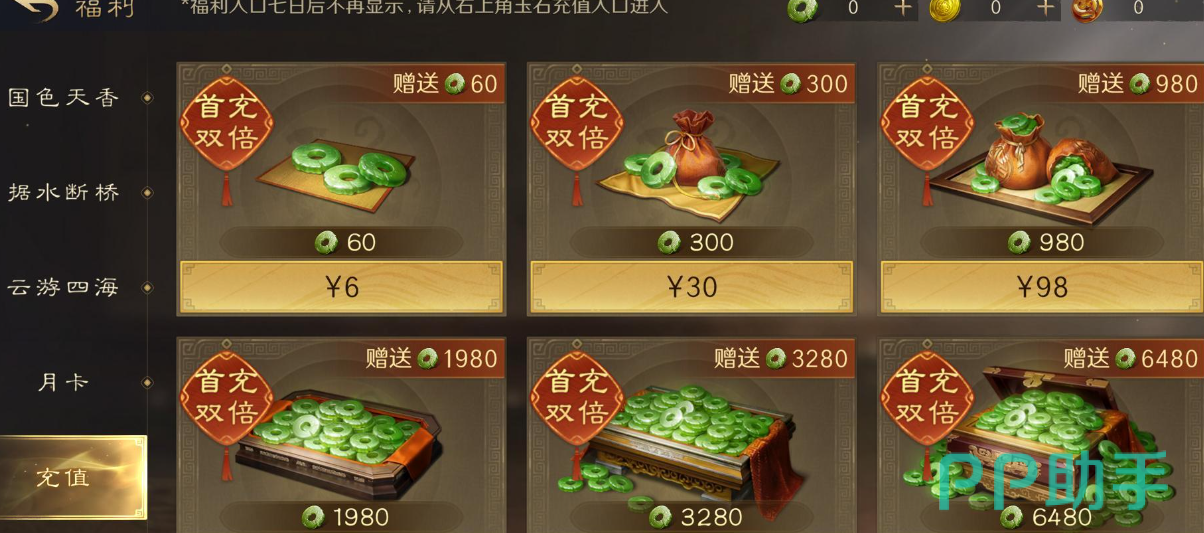在游戏中的玉石货币是需要玩家进行充值才能够获取的,比黄金能兑换到珍贵的道具。找到之后我们来看一看充值页面中有什么样的活动福利,在游戏中,玉石的换算与货币的换算是1:10.。活动中玩家充值的玉石都会双倍增加福利和氪金力度还算优惠。