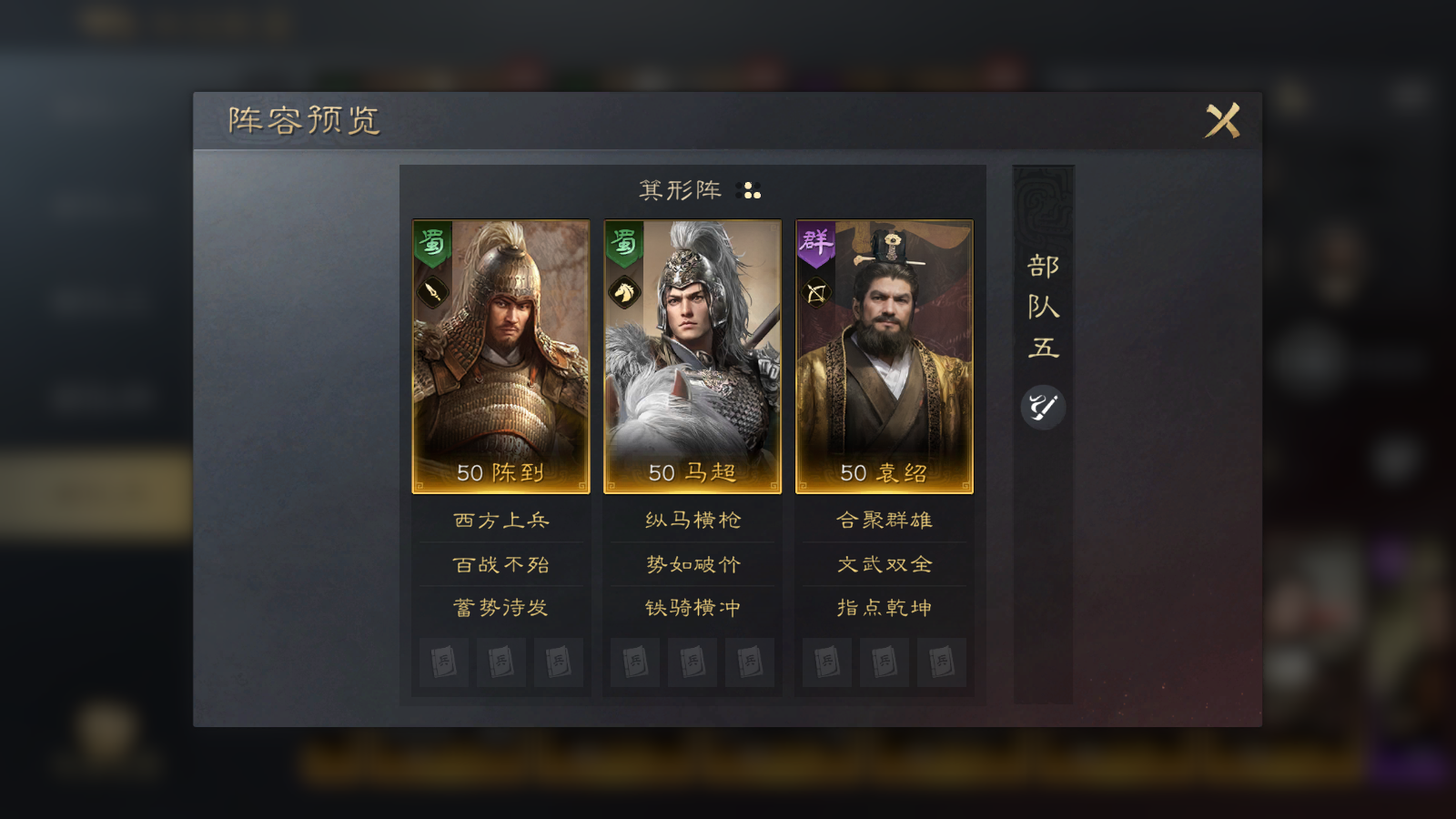 陈到这阵容搭配上就与马超、袁绍搭配能够速战速决,在同盟赛和副本中有压倒性的效果。三国谋定天下陈到武将图鉴分享就到这里结束,小伙伴们可以参考本期内容在游戏中进行养成搭配!