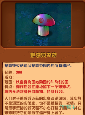 在这款游戏中有一个非常有意思的植物,就是魅惑毁灭菇,这魅惑毁灭菇是咋来的呢?其实就是毁灭菇和魅惑菇两个混合在一起,搞出来的新品种,那植物大战僵尸杂交版魅惑毁灭菇6有什么用呢?很多玩家在玩这款游戏的时候,不知道这个植物的作用到底是什么,今天小编就来给大家介绍一下,希望以下内容对你有所帮助。