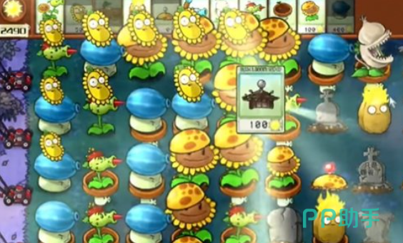 一个冰瓜大喷菇就能同时攻击三行的僵尸,建议大家分散放置,等到后期阳光多了再多种点,绝对让僵尸们措手不及。