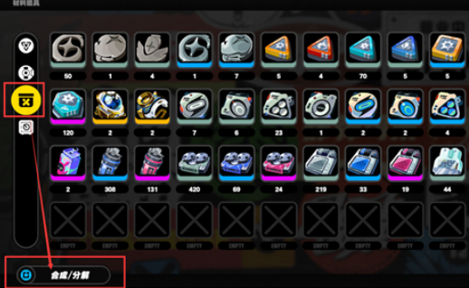 在这个游戏里如果想要分解的话,那先需要点击按钮打开菜单,在菜单里面会有仓库的选项,玩家可以查看仓库里自己所拥有的材料,在这个页面上除了材料之外,还会有一个箱子的图标,好像是在箱子上画了一个x号一样,玩家点击之后就会发现来到了合成和分解的页面,在这里玩家既可以把一些材料合成成更高等级,也可以把自己不需要的物品分解。