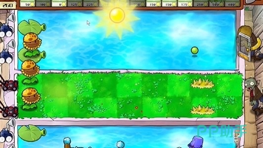 等攒够了阳光,就可以开始布置火力阵地了。在下方泳池里种上豌豆许愿池,利用它超远的攻击距离和不俗的伤害,给那些试图从水路偷袭的僵尸一个迎头痛击。同时,在右侧草坪上种上阳光地刺,给陆地上的僵尸一个惊喜。