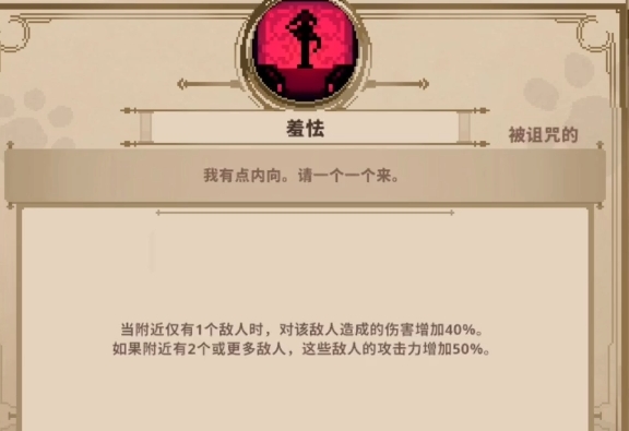 最后的黑暗技能推荐采用“天赋之力+简约+志在必得+羞怯”的搭配,这四个技能分别能增加普攻伤害,对附近敌人的伤害,物品攻击敌人时的伤害,以及在多敌人环境下的伤害,有了它们之后,国王前期清理小怪的能力会变得更强,配合前面的精华和道具一起能打出极佳的表现。